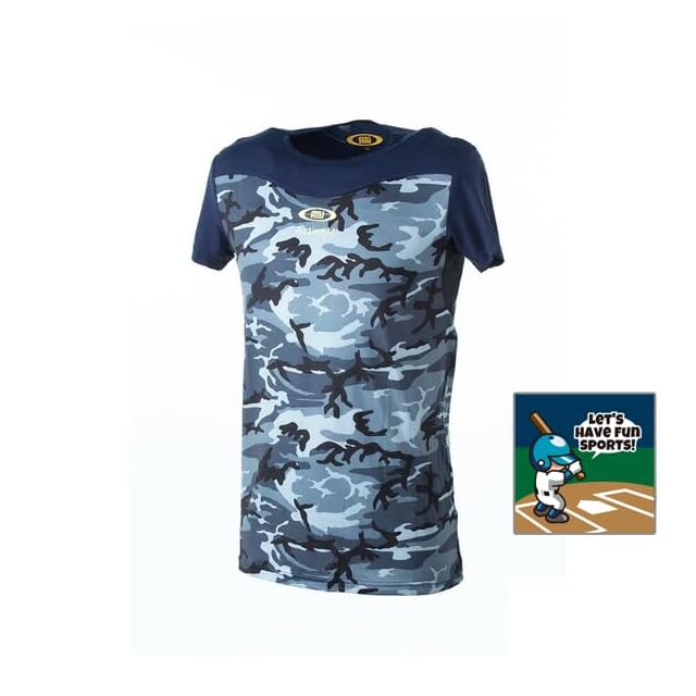 吸汗速乾 カモ柄 着心地バツグンのオシャレなアンダーシャツ!アクティブーム 野球 半袖 丸首 ACTIVEM-LS (XXL, ネイビー)
