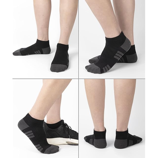 「フィット感とずれにくさを実現」:このくるぶしソックスは人間工学に基づき、足をしっかりホールドする機能性と優しいフィット感も兼ね備えています。ソックスの中段は強化編みで、ほどよい着圧感で足をしっかり包み込みます。履き口部分は伸縮性と回復性に優れて、締め付け感がなくて、激しい動きでもズレにくくなります。