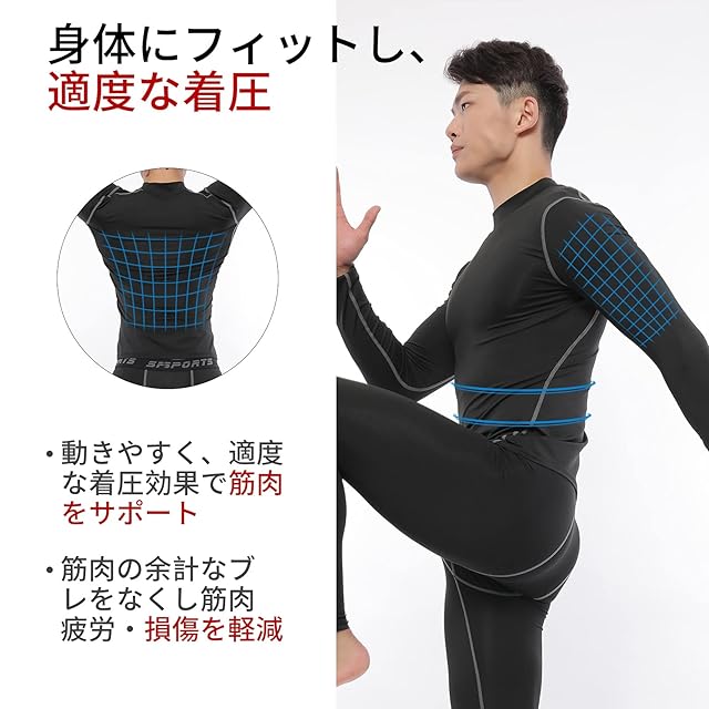 パワーストレッチ:伸縮自在で肌に密着するパワーストレッチが適度な圧力を体にかけることにより、正しい筋肉の使い方のサポートできます。