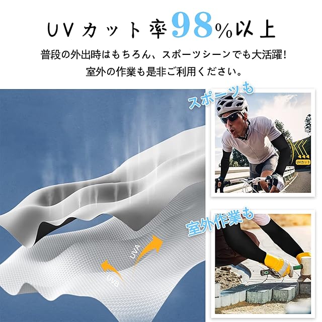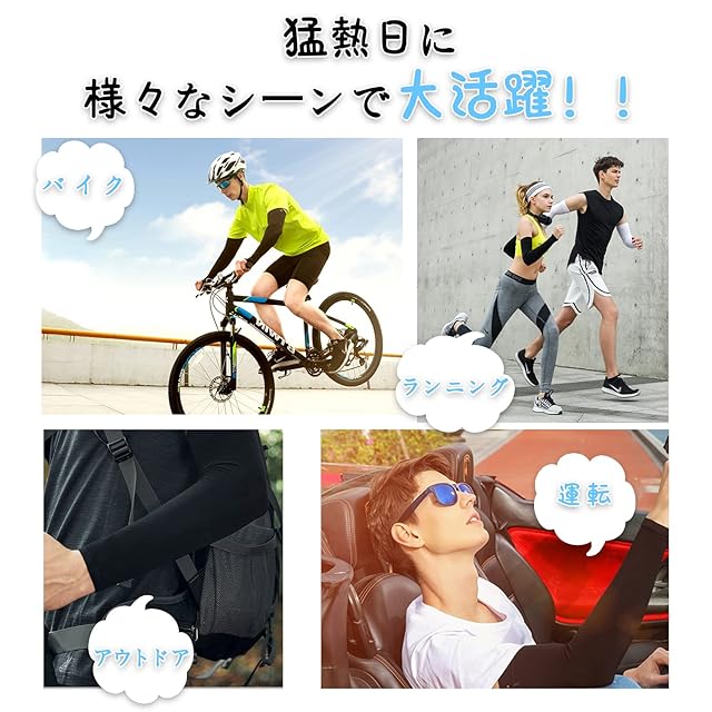 【抜群な吸水速乾機能】肘の内側にはメッシュ素材を採用し、一般の腕スリーブより通気性が良く、汗をかいてもすぐ吸収して発散するので、汗によるベトつきを抑え、さわやかな着心地をキープでき、蒸れることはないです。