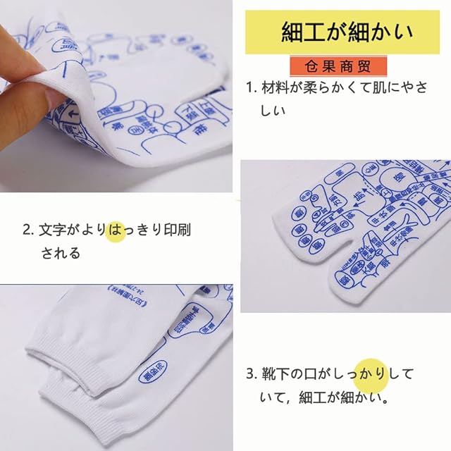 【商品リスト】本商品は全部で2足のツボ靴下を含んでおり、言語は日本語の文字で、ツボの位置がより正確であることを保証しています。図の説明と結びつけて使用することができます。また、何か問題があればいつでも連絡してください。