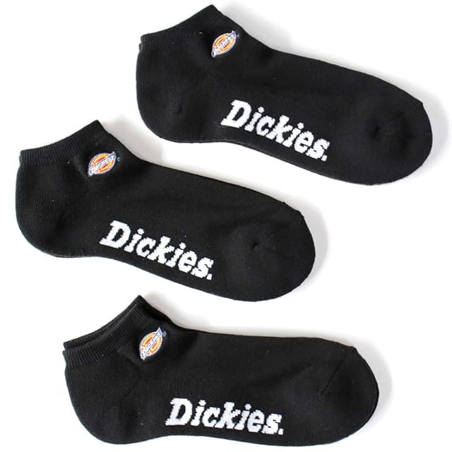 [ディッキーズ] ロゴ刺繍 底パイル 靴下 白 黒 アンクルソックス 3Pソックス くるぶし スニーカーソックス ソックス 3足セット 3P パック <ロゴ刺繍 ブラック-M02>