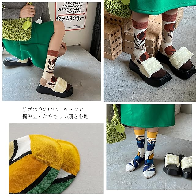 <特徴> おしゃれを楽しむ靴下!足元見るたび気持ちが弾む! ディリーに使えるクルー丈のハイゲージソックスです。 植物、ピカソの絵など個性的な柄を集めました。 肌ざわりのいいコットンで編み立てたやさしい履き心地 フラットシューズに合わせたり、スニーカーからちらりとのぞかせたり。 シンプルコーデも靴下で楽しく。