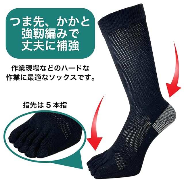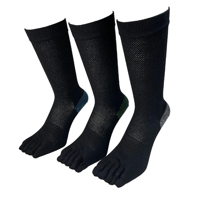 [PAXセレクト] 強靭シリーズ ハードな履き方でも破れにくい、涼しい靴下 つま先カカトを強化 五本指メッシュソックス カカト付き 3足組 #56314
