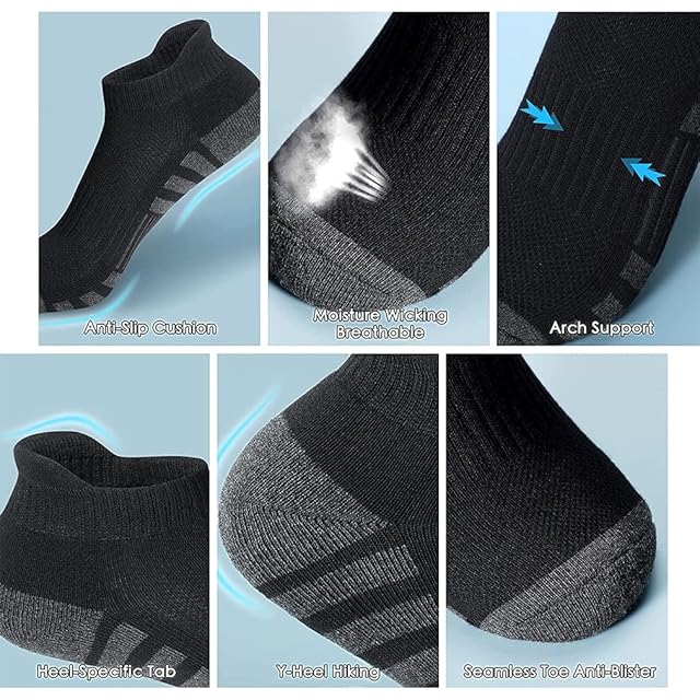 [WuTu] スポーツソックス メンズ靴下 ランニング靴下 衝撃吸収 アーチサポート トレーニング アウトドア オシャレ靴下 24-28cm 5足セット