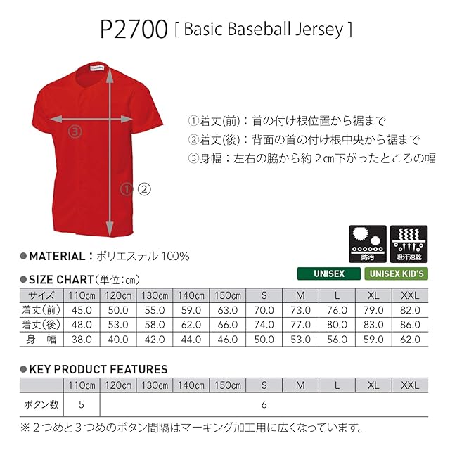 wundou(ウンドウ) P-2700ベーシックベースボールシャツ P-2700-11 レッド 140