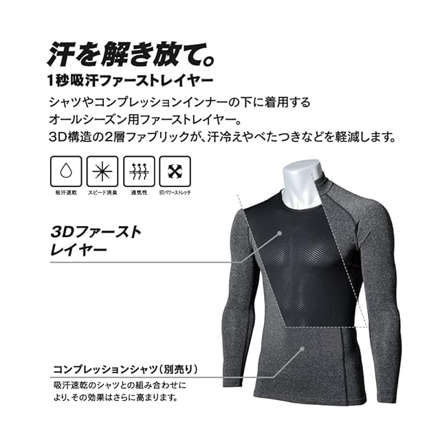 シャツやコンプレッションインナーの下に着用し、汗冷えやベタ付きを軽減
