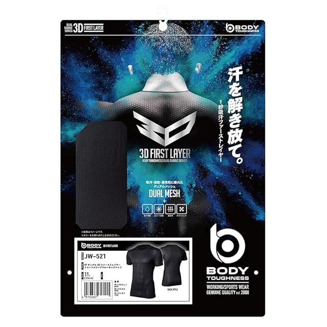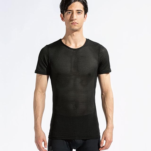 おたふく手袋 オールシーズンインナー 半袖 丸首 3Dファーストレイヤー [吸汗速乾 消臭 メッシュ コンプレッション メンズ] JW-521 ブラック LL