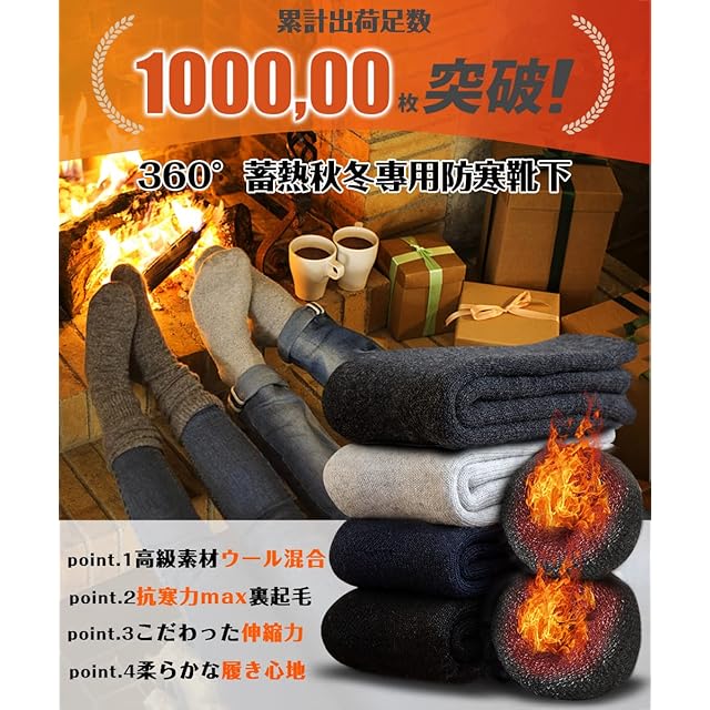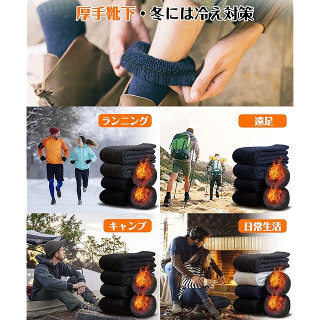【あなたのケアと愛を表現するのに最適なギフト】 メンズ サーマル ソックスは、家族、友人、愛する人への素晴らしいギフトです。日常生活、冬の寒い職場や外仕事など冷え対策にだけでなく、バスケット、サッカー、テニス、ゴルフ、ランニング、トレッキング、キャンプ、遠足、登山などにも適用です。室内でも外出でもとっても重宝しています。(本物のウール素材なので、毛玉や毛落などがあります。毛玉になりにく素材を採用しいるが、毛玉や毛落なしでは100%のレベルには達しません。ご購入する前に予めご了承ください。)