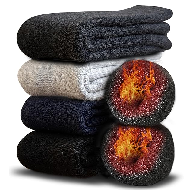 [Andeor] 靴下 メンズ 冬 厚手【極暖38℃恒温・極厚裏パイル・ウール素材・360°蓄熱】 ソックス ウールソックス 防寒 保温 消臭 耐久性 伸縮性 室内 アウトドア 登山 キャンプ 25-29㎝