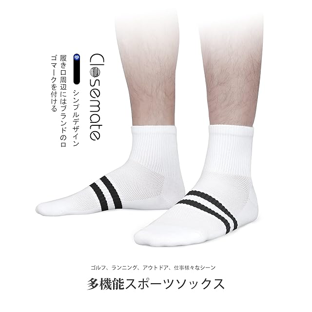 [CLOSEMATE] 靴下 メンズ ショートソックス 防臭吸汗 くるぶしソックス スニーカーソックス 男性 5足セット オシャレ ストライプ クルー丈 スポーツ カジュアル ホワイト 通気吸湿 カラフル