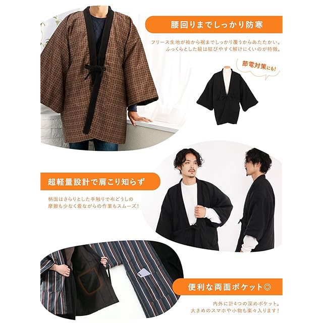 【中綿入りの男性用はんてん】保温性の高い中綿を使用しているので、冬を暖かく過ごせます。