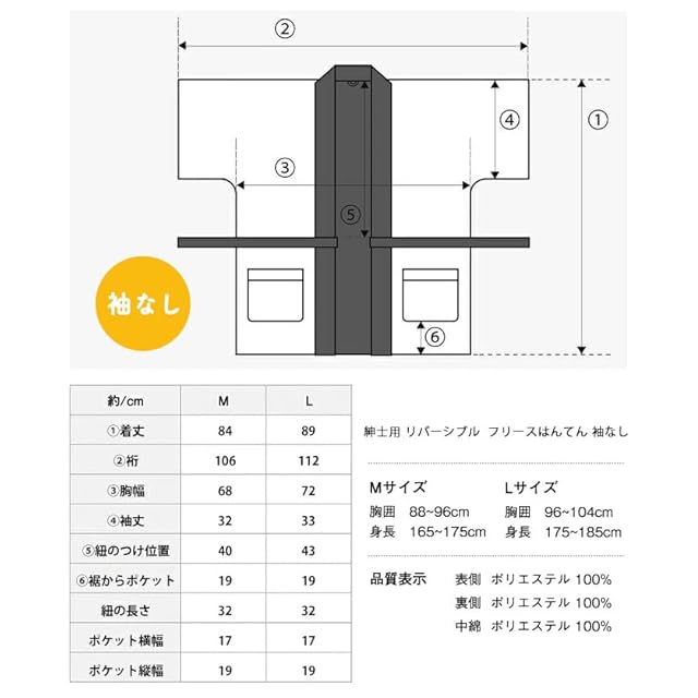 【サイズ】:M:適応身長165-175cm、胸囲88-96cm / L:適応身長175-185cm、胸囲96-104cm [素材]:ポリエステル100%※袖あり/袖なしをお選びいただけます。