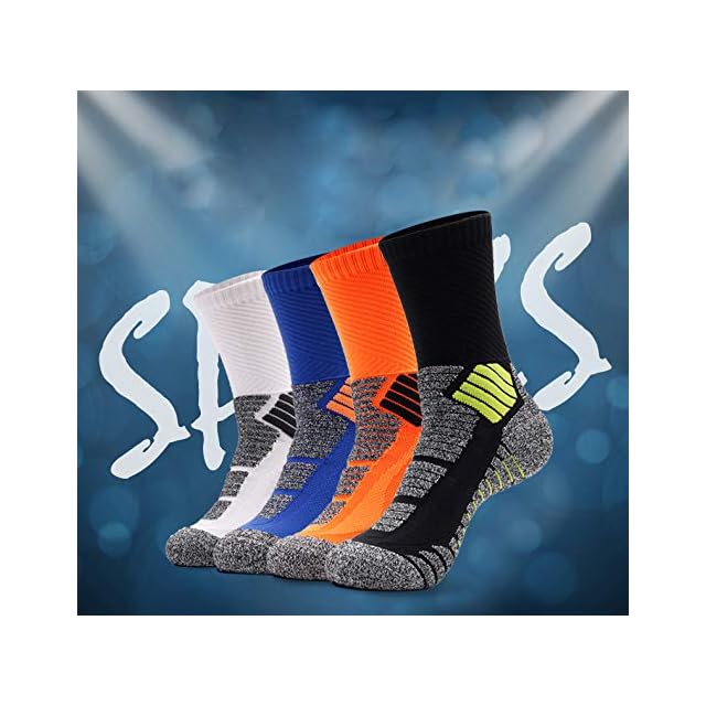 【耐摩耗性】:靴底、つま先、かかとが肥厚しています。これは、高強度の運動に耐えることができます。靴下を厚くすると足に衝撃や摩擦を減らすことができます。通気性いいニットデザインで、吸汗性も良くて、抗菌と防臭機能も期待できて、運動時に両足をしっかりと守る。