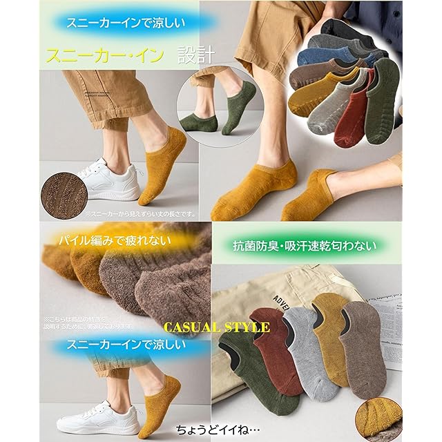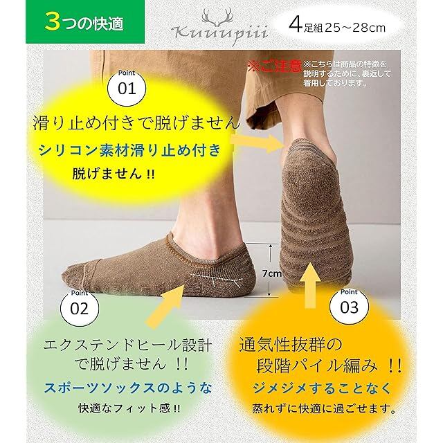 [kuuupiii] 【靴下ソムリエ監修】 スニーカーイン スニーカーソックス フットカバー 深履き 靴下 メンズソックス パイル編み スポーツソックス 登山 カジュアルソックス ソフト口ゴム 抗菌防臭 吸水速乾 綿 春夏秋 (4足組カラフル)