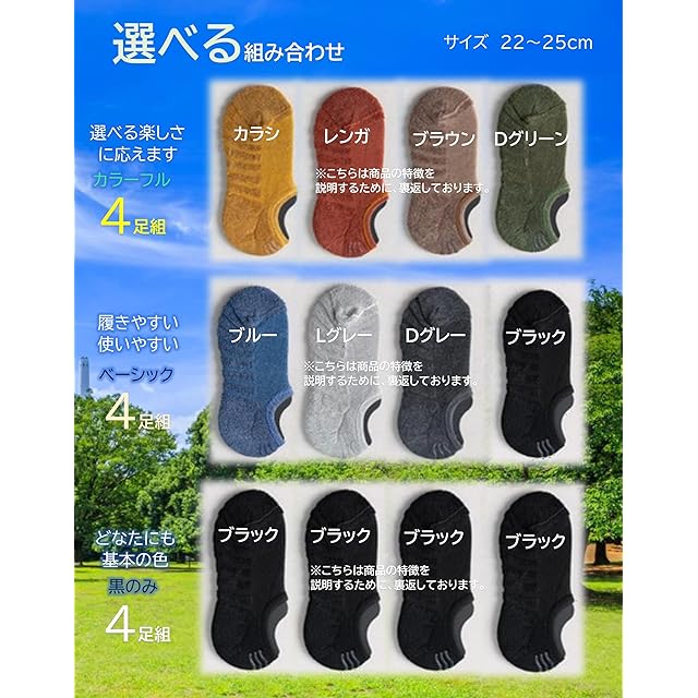 【kuuupiiiさわやか底パイルスニーカーインソックスの基本情報】 サイズ 22~25cm 8足組or4足組 ※靴下はゴムを使用しております。耐久性保持のため、アイロンの使用は避けて下さい。 ※デリケートな柄物ソックスのため、ぬるま湯での洗濯や洗濯ネットの使用も推奨いたします。