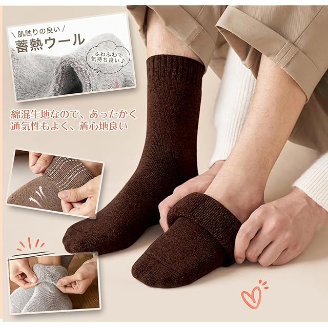 たっぷりのボリュームでしっかり暖かい極厚靴下。 ふかふかの裏起毛で足元から温めます。 この分厚さで地面から伝わる冷気を遮断します。 おうちの中はもちろん、ゆったりめの靴や、ブーツなら外出時にもOK!