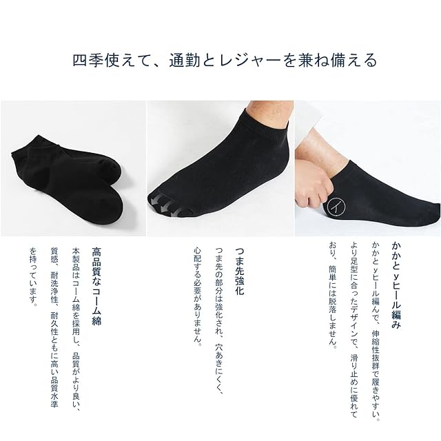 【抗菌・防臭・吸汗】コーム綿を採用しているので、より良い吸湿性と通気性があり、手触りも良く、足を常に乾燥状態に保ちやすいです。また、帯電防止性、強力な脱臭、有効な抗菌の特性があります。細菌の繁殖を抑制し、臭いの発生を抑えます。