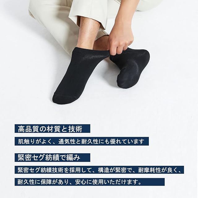 【耐久性と伸縮性抜群】本製品は緊密セグ紡績技術を採用しており、構造が緊密で、耐摩耗性が良く、耐久性に優れています。洗濯を繰り返しても型が崩れにくいです。かかとyヒール編んで、伸縮性抜群で履きやすい。より足型に合ったデザインで、滑り止めに優れており、簡単には脱落しません。