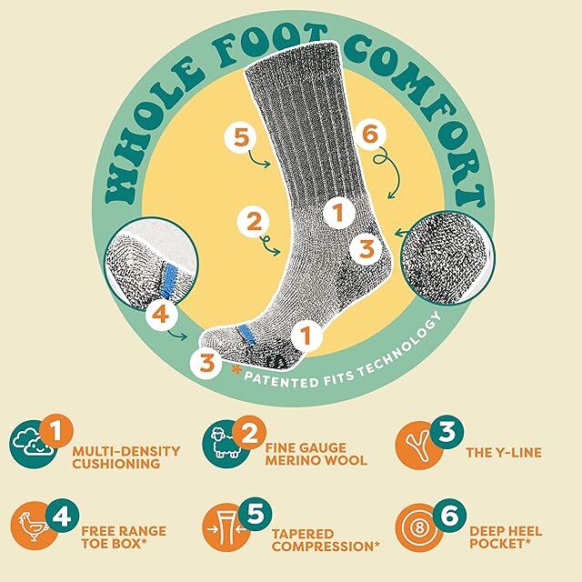 タイプ:FITS Expeditionはふくらはぎ中央の高さで、背の高いアウトドアブーツに最適です。 このソックスは足の裏にメリノウールを100%使用しているので、寒い冬でも快適かつドライな状態を保ちます。