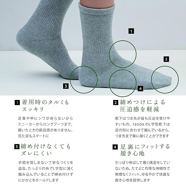[ラソックス] 靴下 FFコットン・クルー L.グレー L