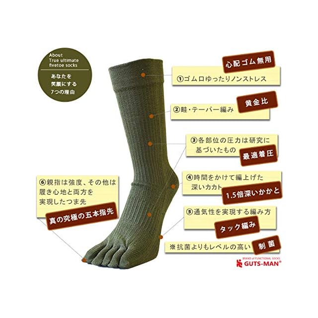 [ガッツマン] 真の究極の五本指ソックス 消臭 制菌 抗菌 最適着圧 吸汗速乾 S 23-25cm OD
