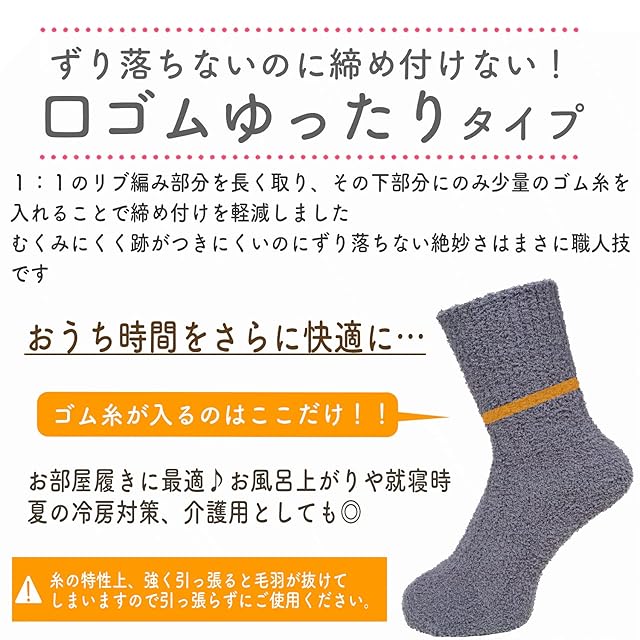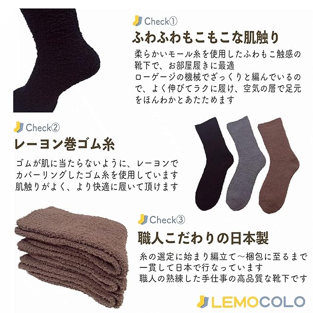 [レモコロ] 日本製 靴下 モコモコ モールソックス (ルームソックス) 口ゴムゆったりタイプ 3足組 メンズ (24.0-26.0 cm, アソート)