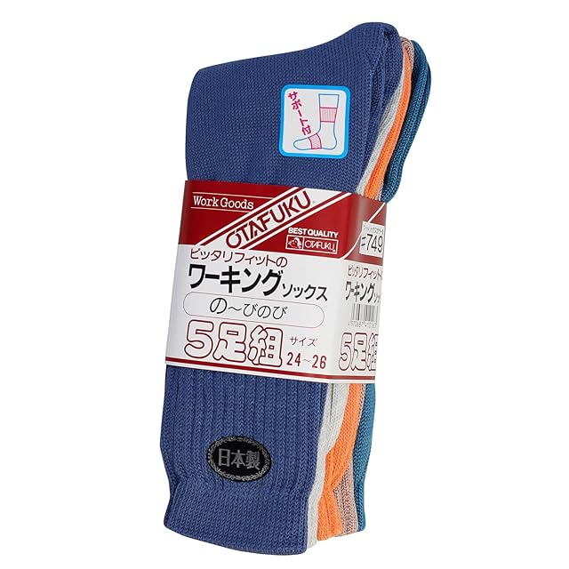 おたふく手袋 靴下 ワーキングソックス [先丸 日本製 サポート付] #749 カラーアソート 24~26㎝ 【5足組】