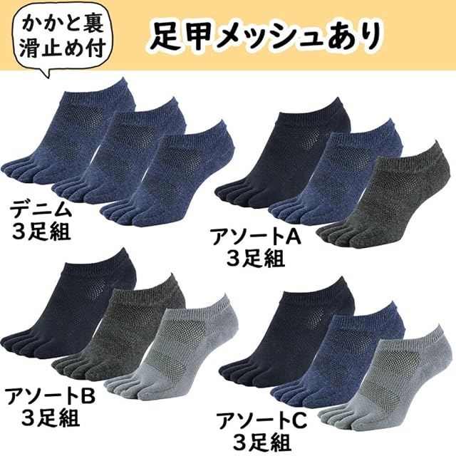 [アスカ] 5本指ソックス 深履きカバー 旭化成消臭ROICA使用 かかと裏に滑り止め付き フットカバー メンズ レディース 25-27cm 3足