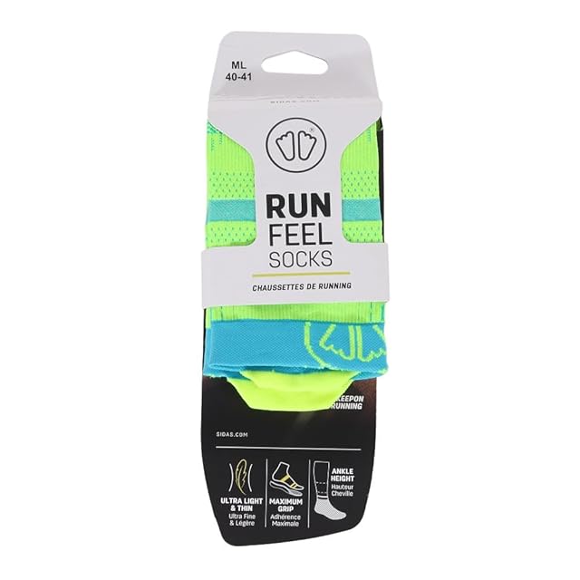 【シダス】シダス ラン・フィール イエロー×ターコイズML(40-41/26.0cm-26.5cm)321415404 ランニング ソックス 軽量 薄手 ショート丈 サポート 通気性
