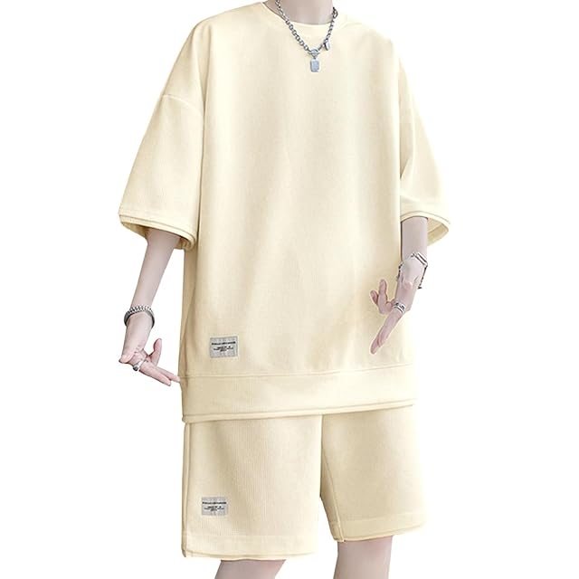 [KQOKQO] ジャージ 上下セット メンズ 半袖 セットアップ 大きいサイズ Tシャツ ハーフパンツ スウェット ゆったり お洒落 無地 カジュアル トレーニング スポーツウェア 夏 服 8色