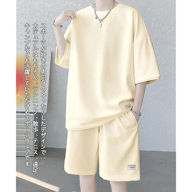 1.夏にご愛着して頂ける半袖メンズ上下セットです。手頃の価格でTシャツとハーフパンツを入手できてお買い得です。スポーツが好きの男向けのゆったりしたデザインで、カジュアルはもちろん、ランニング、散歩、テニス、遠足、キャンプなども活躍していただけるスポーツウェアです。