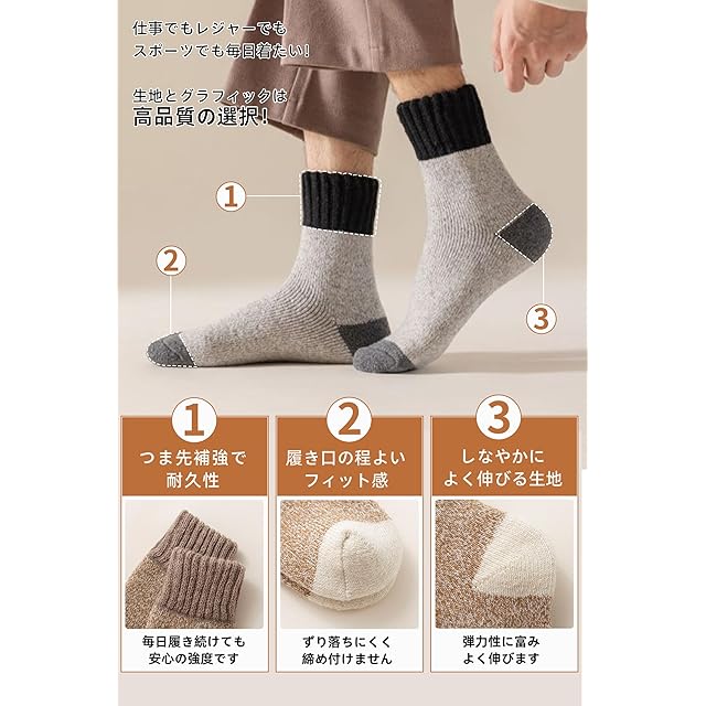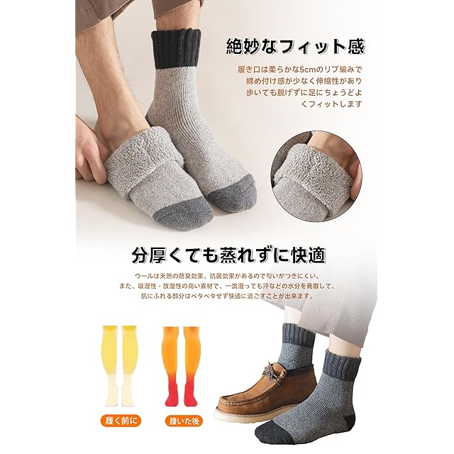 [Caudblor] ウール 靴下 メンズ 防寒 厚手ソックス ウールソックス 冬用 靴下 厚手 極暖 暖かい 防寒ソックス 厚 室内 吸汗 防臭 通気性 3足セット 25-28cm