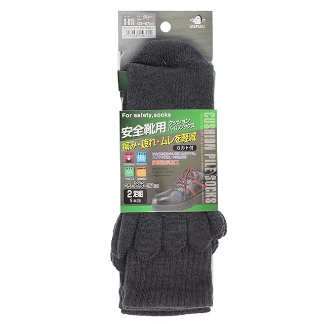 おたふく手袋 靴下 パイルソックス [5本指 サポート付] S-818 グレー 25~27㎝ 【2足組】