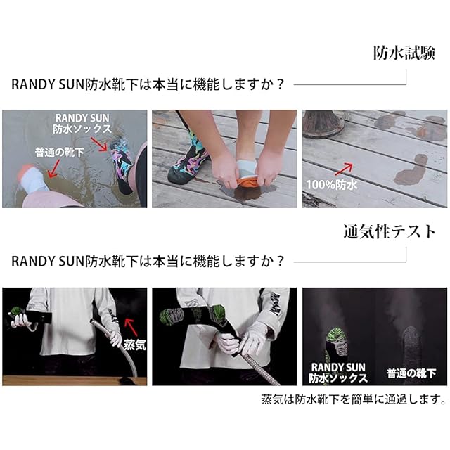 【スマート】RANDY SUNの防水ソックスは、あなたの足を安定した温度に保ちます。外が寒い時は、防風防水ソックスが足を保温します。外が暖かい時は、汗を素早く蒸発させ、皮膚から熱を奪います。通気性に優れたソックスは、足を涼しくドライに保ちます。この防寒アウトドア・ソックスは、足の冷えやしびれ、水ぶくれ、凍傷、塹壕足などを防ぎます。