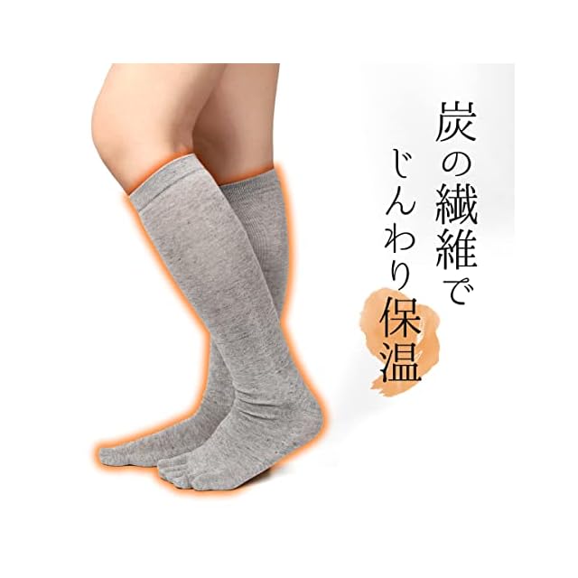 【 じんわり 温める 5本指 ハイソックス】 家でも外でも冷える足。クーラーの効いた室内や冷え性、また厳しい寒さが続く冬は足から冷えてツライ・・・少しでも足を温めて、あなたの体を大事にして欲しい。 【炭で出来た特殊繊維】 炭が糸になった特殊な繊維 SUMISEN スミセン を使用しているので、遠赤外線効果で足をじんわり保温してくれます。炭が糸になっているので、洗濯しても効果がなんと半永久的に持続。ハイソックスな靴下で5本指だから指先から膝したまでしっかりとじんわり暖めてくれます。