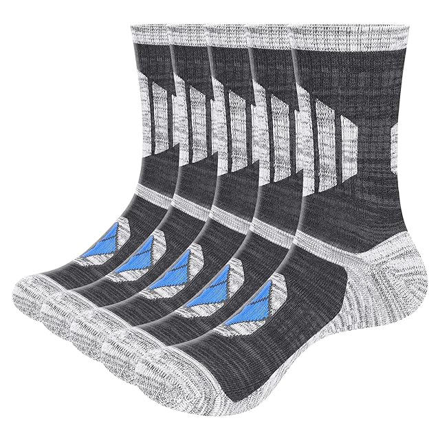 [YUEDGE] 靴下メンズ スポーツソックス 厚手 作業用靴下 丈夫 登山用靴下 頑丈 破れにくい 強化 クッション 高級綿 25-28cm 5足セット グレー