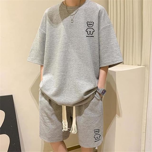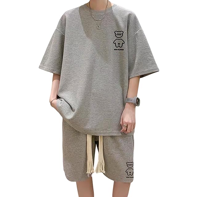 [Cloudstop] 夏服 ジャージ メンズ 上下セット 大きいサイズ tシャツ メンズ 半袖 上下 セット ハーフパンツ セットアップ メンズ 無地 ゆったり スウェット メンズ 上下 カジュアル おしゃれ スポーツウェア 大きいサイズ (2XL, グレー)