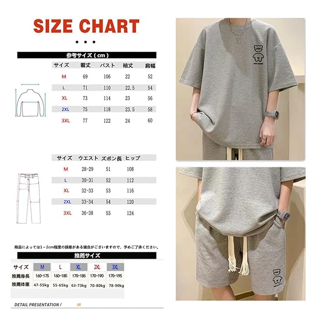 1】柔らかい生地を採用し、肌触りも心地良い仕上がり、快適に着こなせます。夏には欠かせない 半袖 tシャツ & ハーフパンツ の ジャージ 上下 セット!今年大活躍間違いなしの セットアップ です。【2】五分袖 tシャツ の胸元にキュートなクマのプリント、オシャレなスタイルを楽しんで頂けます。上下別々で着てもお洒落に着こなします。セットアップ で旬の男らしさもカジュアルさも手に入れます。【3】夏を遊ぶ旬コーデで、着回し自在、年齢を選ばず、日常着・通勤通学・部屋着・カジュアルコーディにもスポーツ・アウトドアにも活躍できる ジャージ メンズ 上下セット です。
