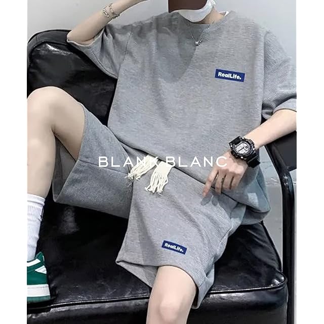 [ブランクブラン] 上下 セットアップ ワッフル ルームウェア tシャツ ショートパンツ ベルト付き 春 夏 ウォーキングウェア ジャージ ジャージ上下 スウェット セット 上下セット ストレッチ 動きやすい服 ゆったり スエット オシャレ カジュアル ルーズワーク ビジネス リモート ルーム ルームウエア 大きい サイズ おおきい ドロストベルト せっとあっぷ グレー 3S-B13-GY2XL