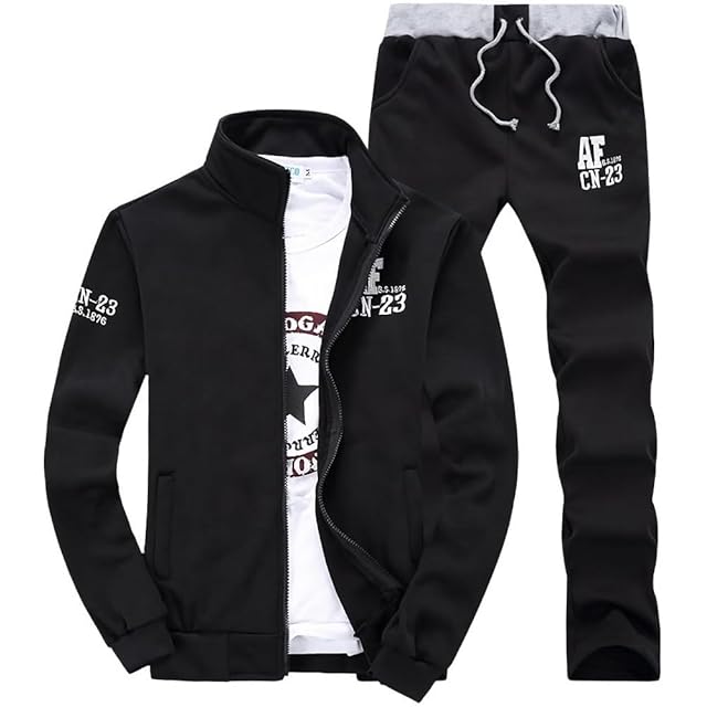 [アスペルシオ] カッコいい あったか スエット セットアップ フードなし ストリート ファッションジャージ メンズ スウェット上下 長袖 長ズボン ベーシック ホームウェア 2点セット 部屋着 快適 暖かい ルームウェア 上下セット スウェット ジャージランニング ラフ ダンス アウトドア スポーツカジュアル リラックス 大人 ウェア フルジップ 上下 家着 カラージャージ (L) ブラック