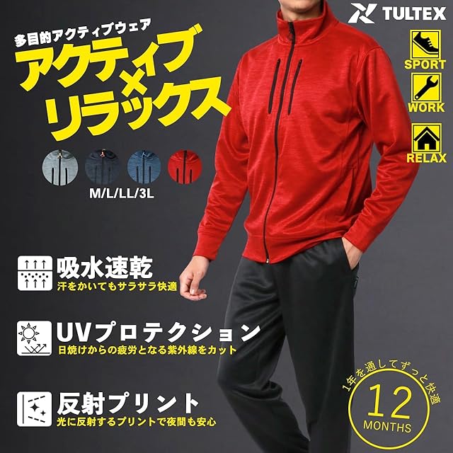 [タルテックス] ジャージ メンズ 上下セット スポーツウェア トレーニングウェア ランニングウェア 別注 セットアップ M-6L 吸汗速乾 ルームウェア チャコール 3L