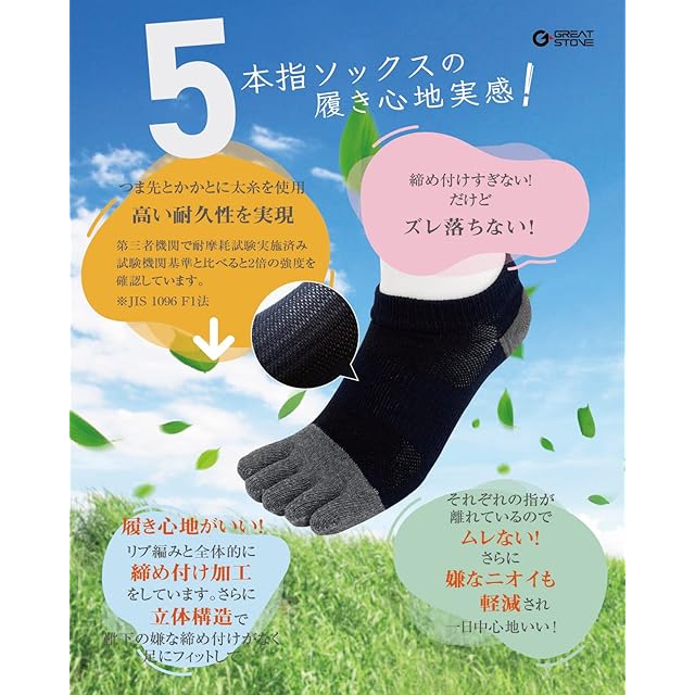 【防臭加工】綿混で蒸れにくく、サラサラな履き心地。綿100%よりも蒸れにくく、ニオイが残りにくい。五本の指がそれぞれが清潔に保たれ消臭効果抜群。汗をかきにくく、匂いにくい。