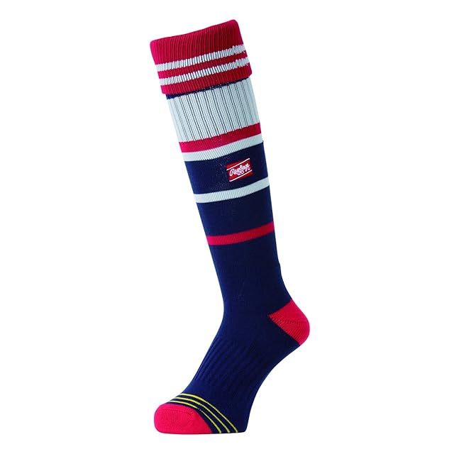 Rawlings(ローリングス)野球 ソフトボール ロングソックス 折り返しライン AAS9F01 (ネイビー/レッド 22-25cm)
