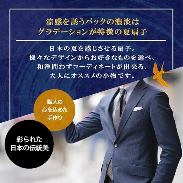 商品情報:涼感を誘うバックの濃淡はグラデーションが特徴の夏扇子。 扇子袋は持ち運び時に便利なだけなく、扇子を破損や汚れからも守り保護する役割があります。箱もついていますので、父の日や敬老の日はじめ、いろいろなギフトにもオススメです。