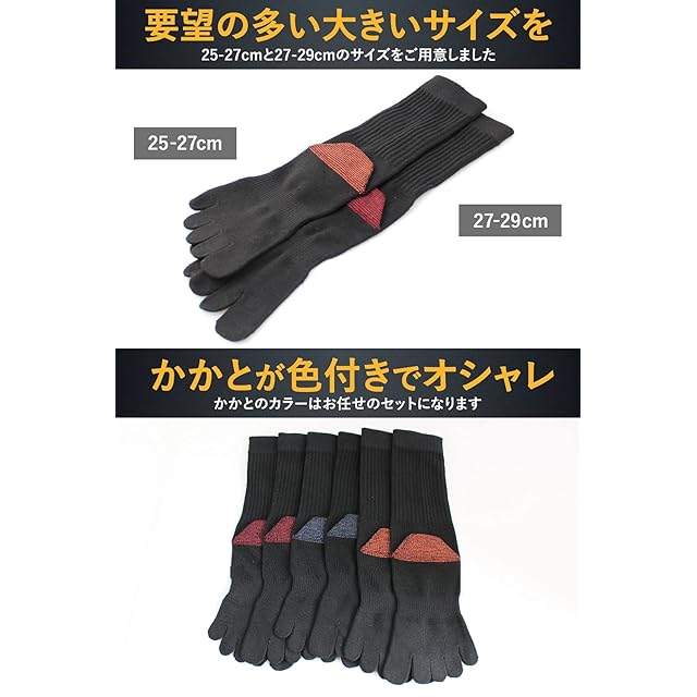 【2サイズの五本指靴下】 25、26、27cmの普通サイズと、27、28、29cmの大きいサイズの2サイズをご用意しています。靴下は適したサイズを着用して頂くと、より快適にお過ごし頂けます。※サイズが合わない場合は返金か交換が可能ですので、当店までご連絡下さいませ。
