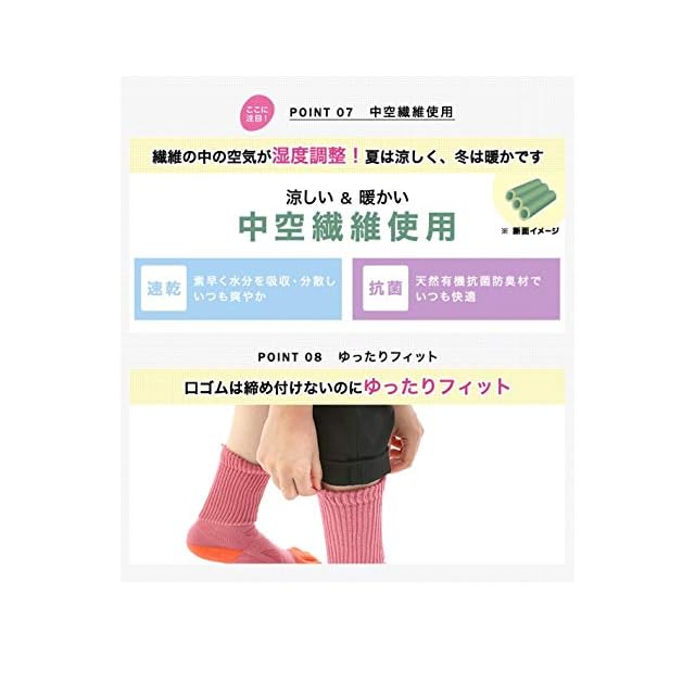 衝撃を緩和するパイル編み(パイル編みで、クッション効果があり、衝撃を緩和し疲れを軽減!