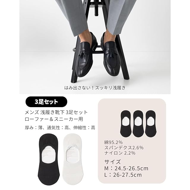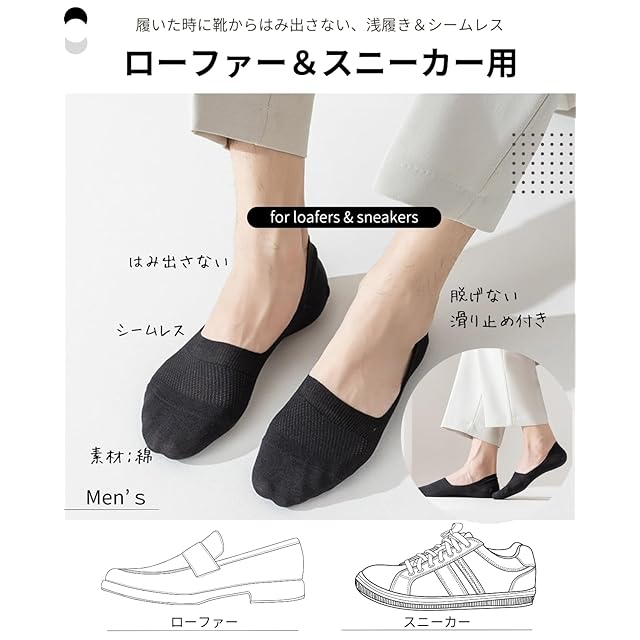 ✅【サイズ】M:24.5-26.5cm、L:26-27.5cm ※サイズをご確認ください。メンズ フットカバー 浅履き ソックス ローファー用 夏用 薄手 3足セット