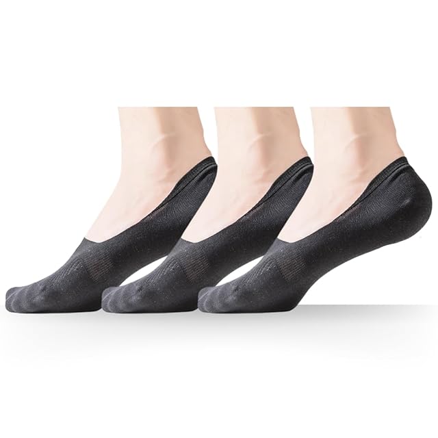 [AQshop] 薄い フットカバー メンズ 靴下 ローファー用 くるぶしソックス 浅履き 綿 薄手 メッシュ 滑り止め付き 3足セット (L, ブラック)