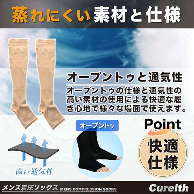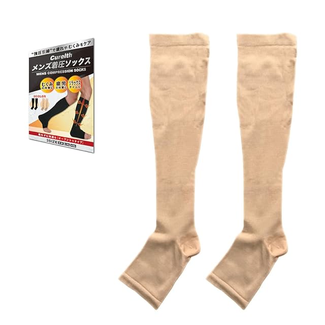 [Curelth] 着圧ソックス メンズ 加圧 靴下 就寝用 オープントゥ 両足セット 通年